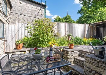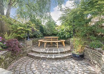 - Enclosed tiered courtyard with picnic bench