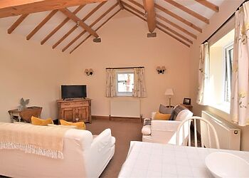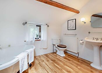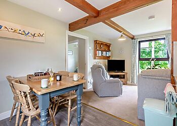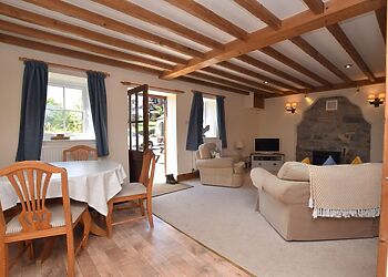 - Exposed beams throughout cottage